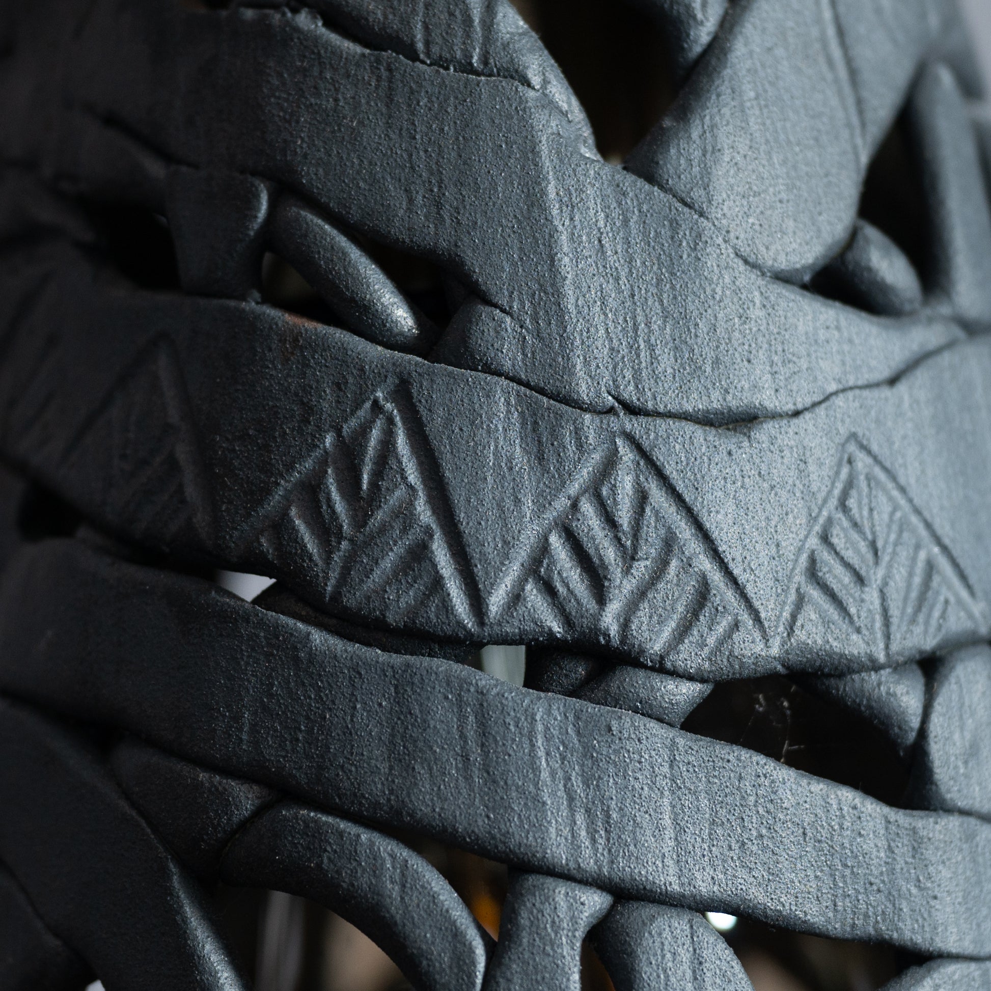 When illuminated, Kūlāya casts enchanting shadows that transform surrounding spaces into a forest canopy dappled with light. The interplay between the nest-inspired cutouts and the tribal geometric etchings creates a dual layer of light play – bold organic shadows mixed with subtle geometric patterns that pay tribute to both natural and cultural inspirations.