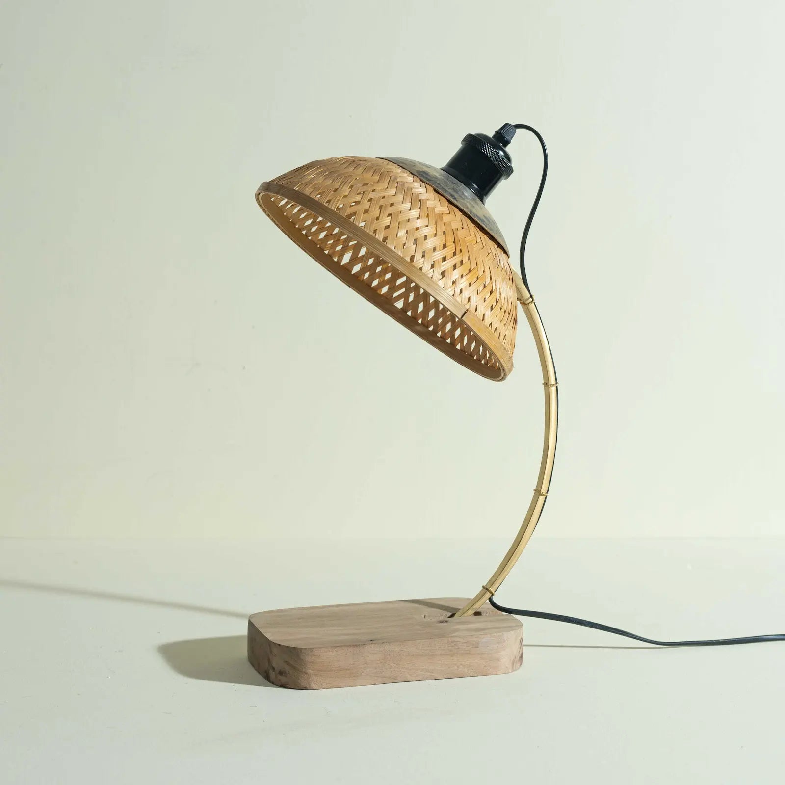 Dīpa, Sanskrit for "lamp," brings the warm soul of traditional illumination into contemporary spaces through a harmonious marriage of bamboo weaving, brass engineering, and solid wood craftsmanship. This exceptional table lamp marks the Aabha collection's premium offering in task lighting, extending the collection's commitment to sustainable design and artisanal excellence into a versatile, directional lighting solution.