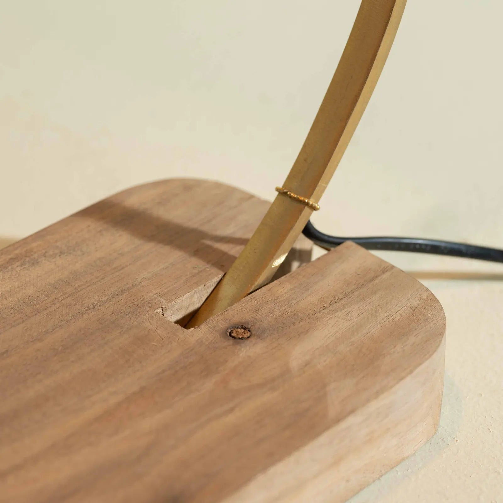 Designed by Abhijeet Kaushal, the lamp features a gracefully curved brass arm that arches from a solid wooden base, creating an elegant silhouette reminiscent of temple oil lamps reimagined for modern life. The brass holder embraces the bamboo shade securely while allowing the organic material to remain the visual focal point. The articulated design enables you to direct light precisely where needed, making Dīpa equally suited for focused reading, ambient mood lighting, or as a sculptural accent on console tables and nightstands