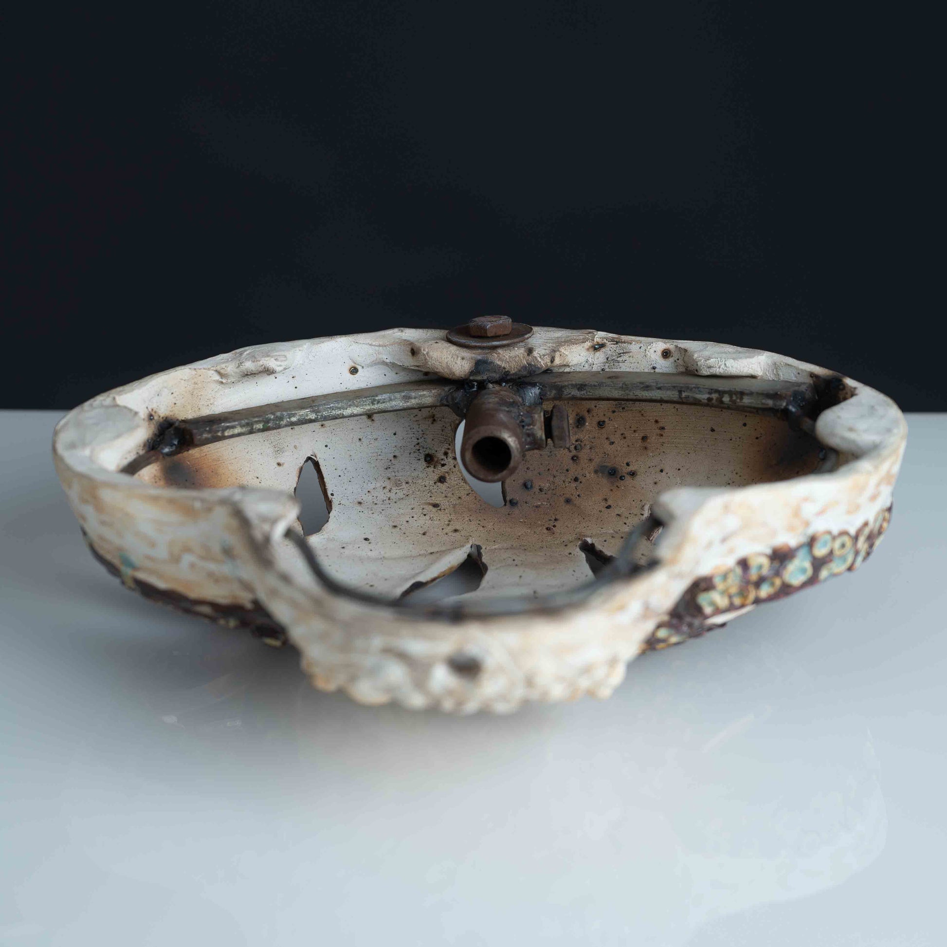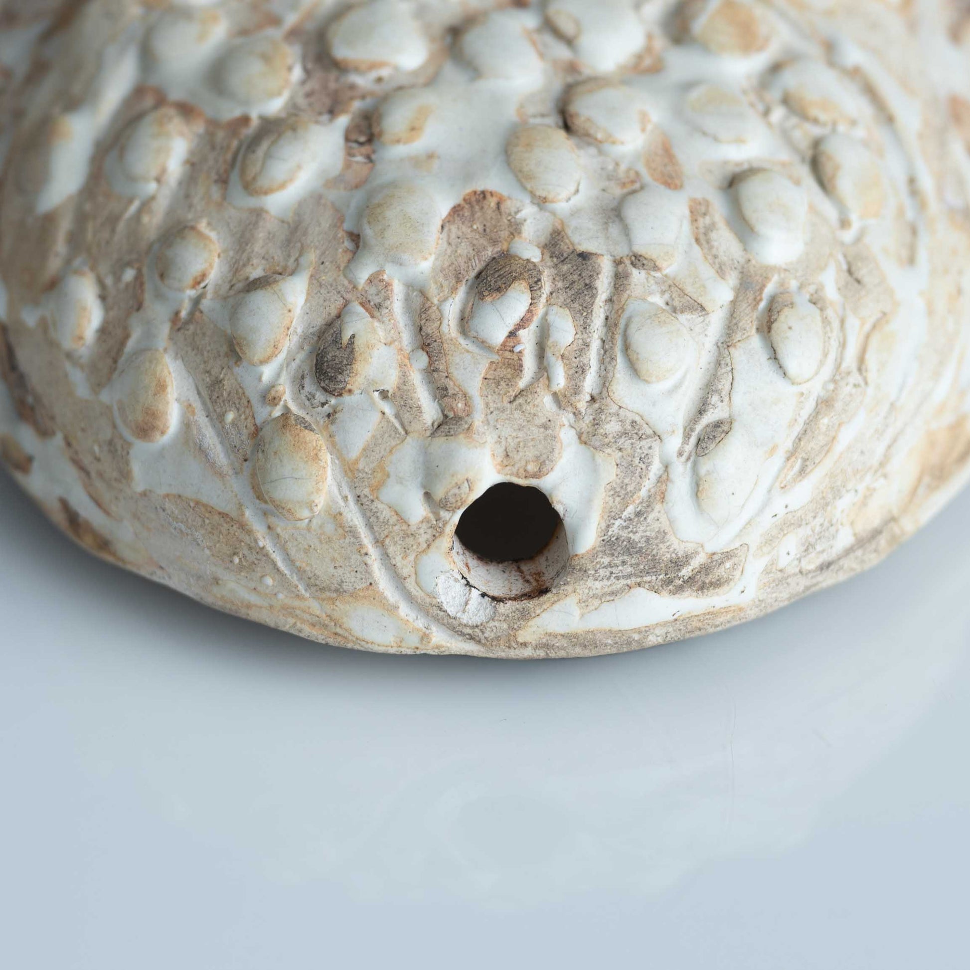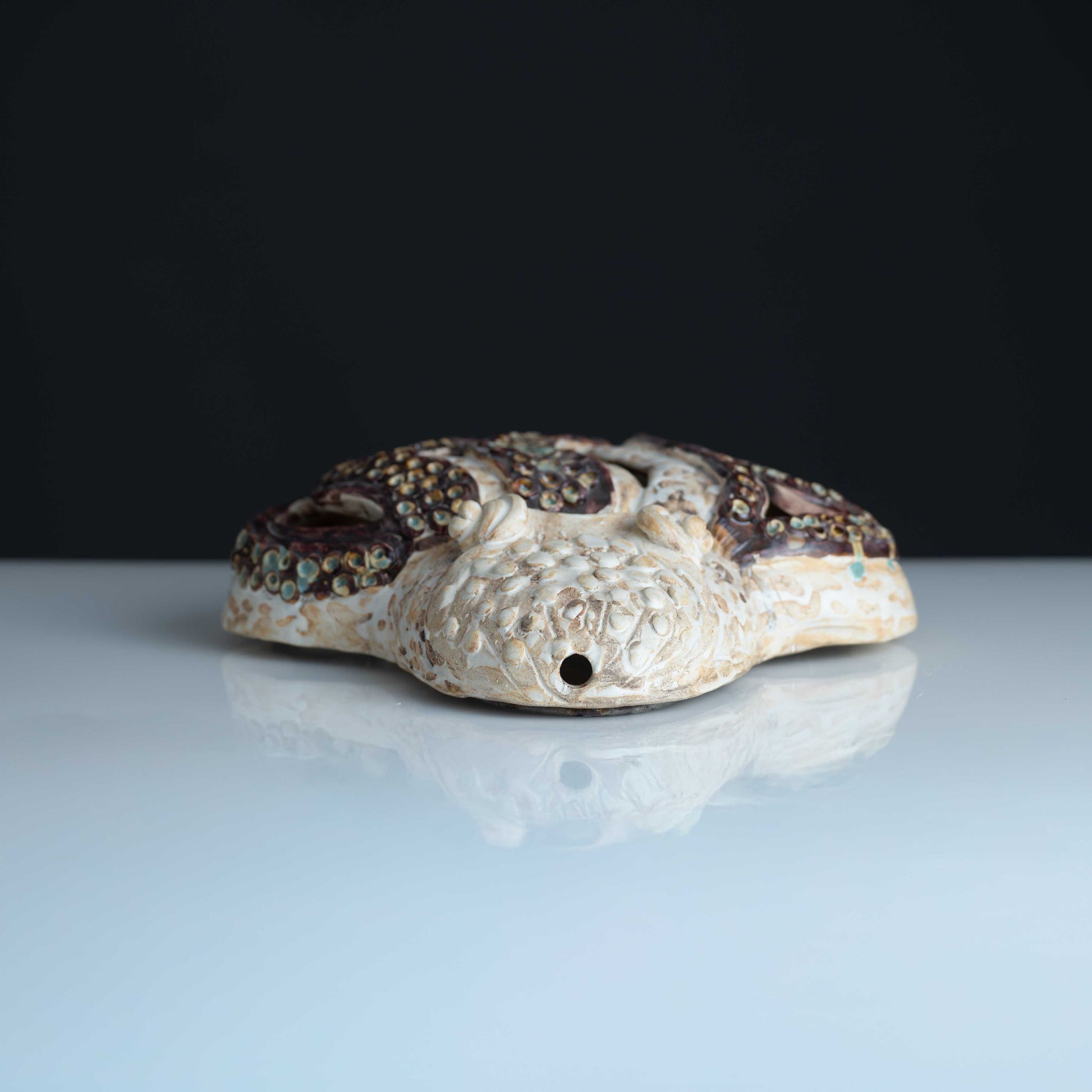 Ashtabhuja is an exquisite sculptural ceramic mask mounted on a natural wooden base that beautifully merges oceanic inspiration with contemporary design. This premium art piece features an intricate dome-like crown of flowing tentacle-like forms adorned with hundreds of meticulous pearl-like beads that catch and reflect light with subtle iridescence.