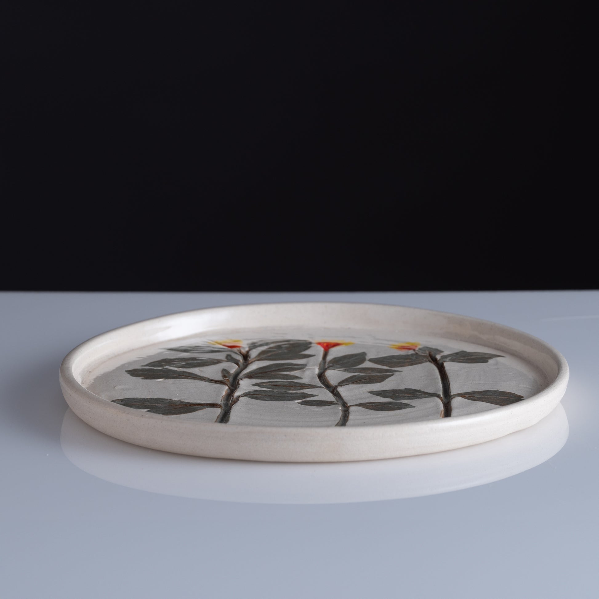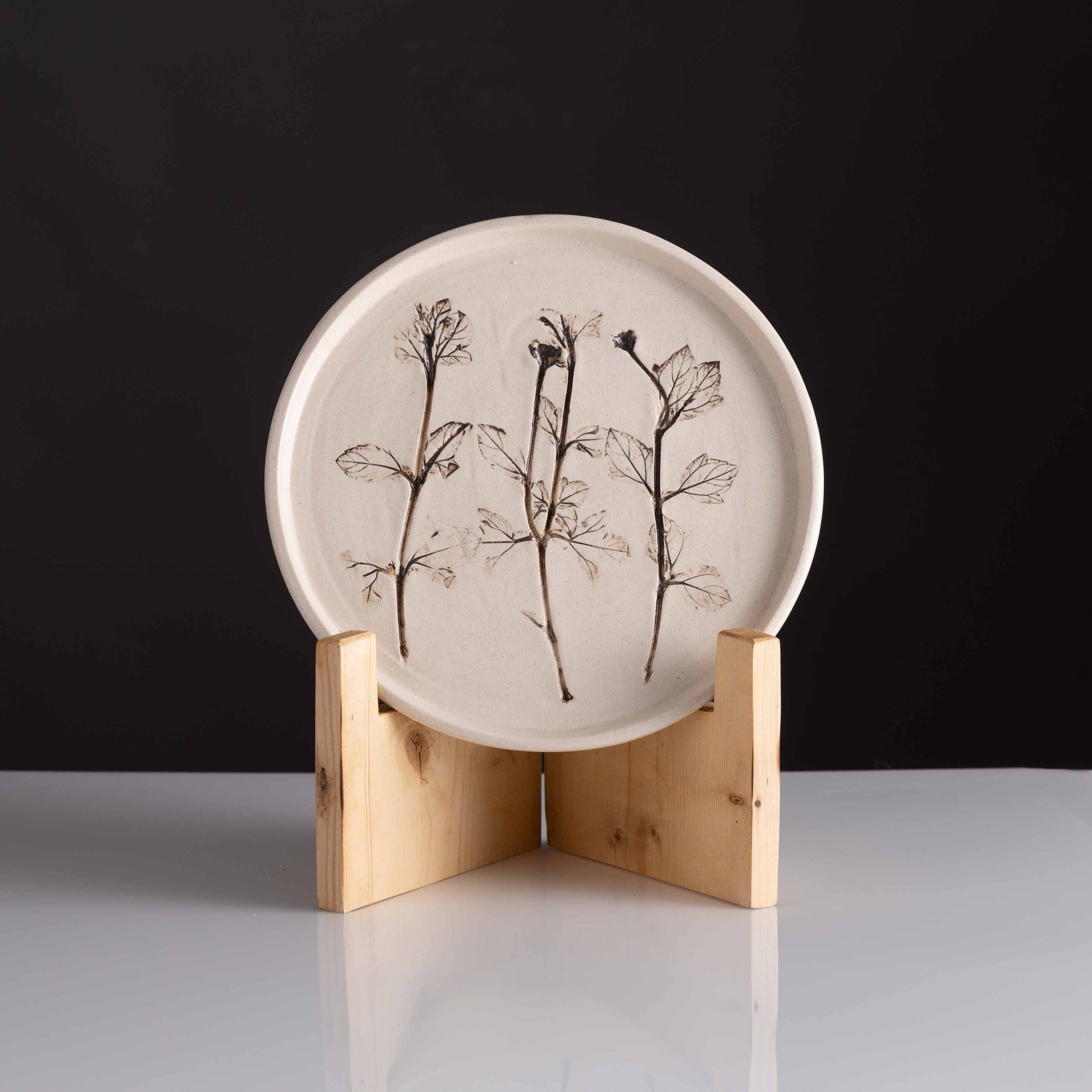 The Bhringraj leaf from the Bhringraj (Eclipta prostrata) plant is a medicinal powerhouse in Ayurveda and other traditional systems. It is commonly found growing as a weed in waste places, marshy lands, hedges, and roadsides and is one of the medicinal plant species traded in high volumes sourced mainly from wastelands! The herb, also called “The King of Hair”, is used in the preparation of hair care herbal products like shampoos, protein conditioners and revitalising hair oils. The Bhringraj plant comes in many varieties as do our commemorative stoneware plates for it, with hand-carved wooden stands, to remind us of nature’s bounty.