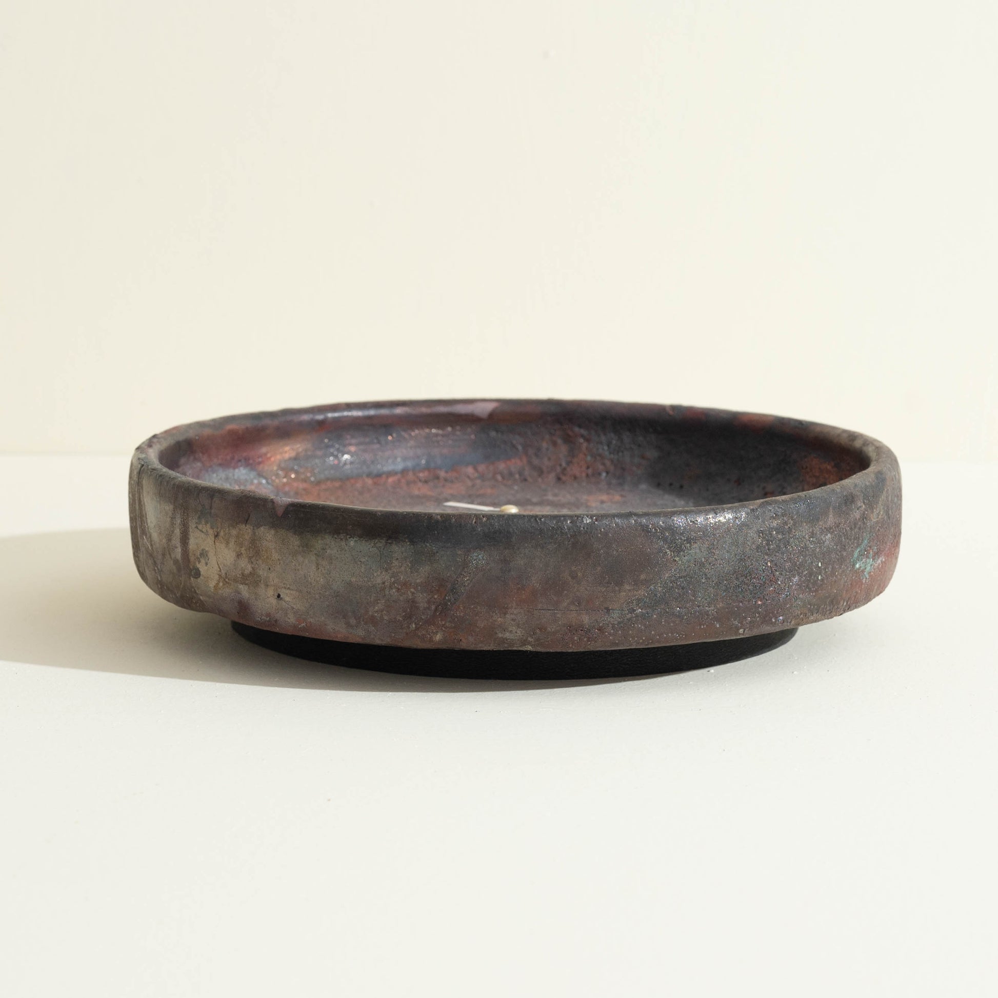 Time becomes art with the Ember Kaal wall clock, where the ancient Japanese Raku firing technique transforms a functional timepiece into a mesmerizing cosmic landscape. This extraordinary piece features a dramatic surface where deep charcoals swirl with copper flashes and burnt sienna tones - each pattern uniquely formed through the dramatic alchemy of fire, smoke, and reduction that defines authentic Raku ceramics.