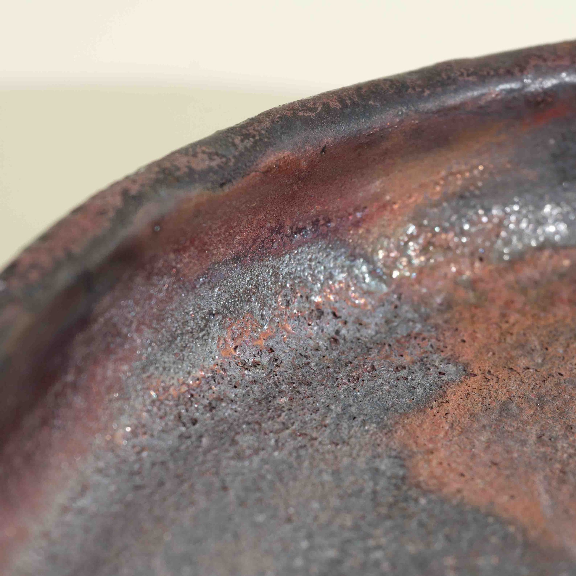 Created by master ceramist Sarada Rout, this piece undergoes the transformative Raku process where it is removed from the kiln at peak temperature and subjected to post-fire reduction in combustible materials. This dramatic technique creates the distinctive crackled surface, metallic sheens, and unique color variations that make each clock an unrepeatable work of art.
