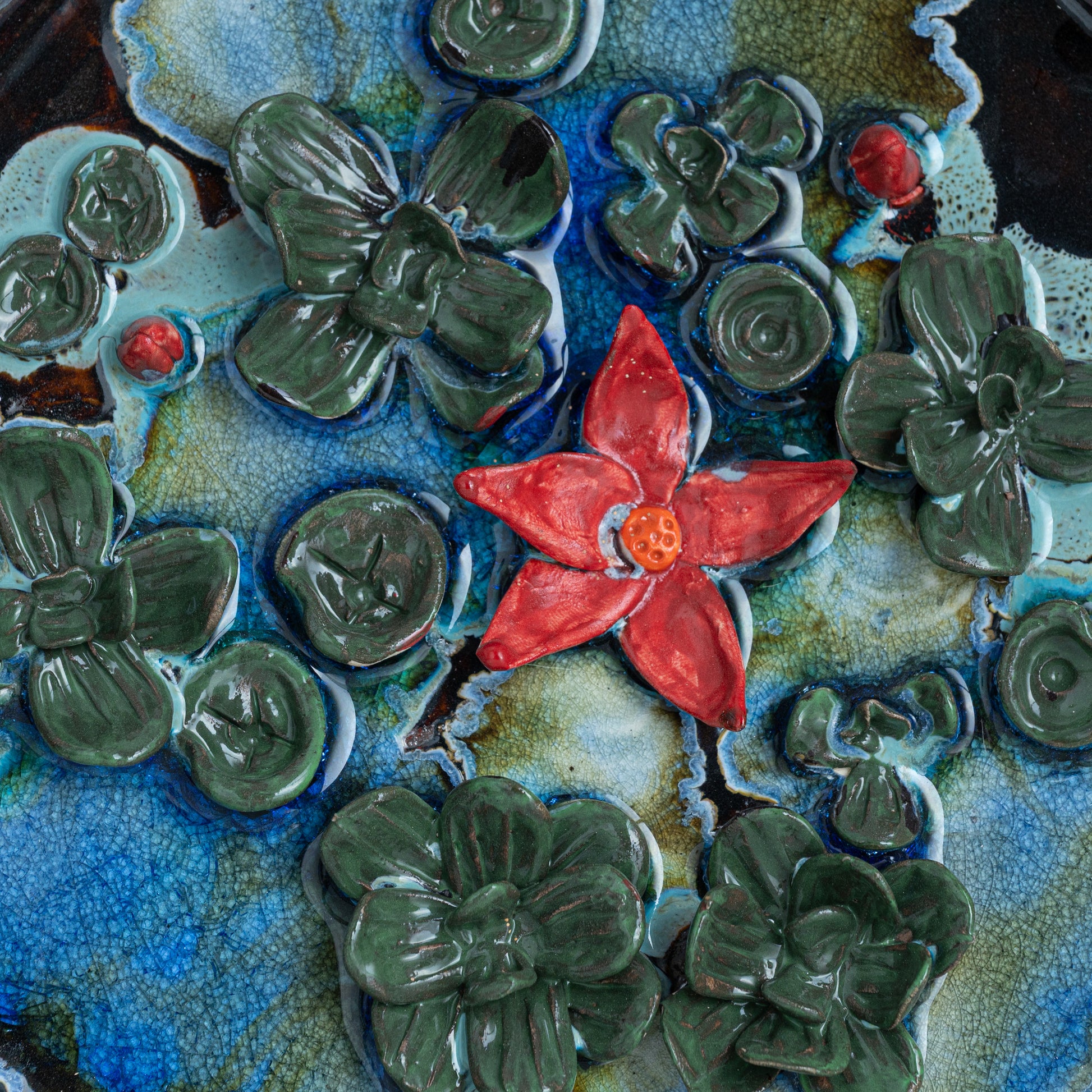 This handcrafted plate  features a stunning lily pond design, bringing a touch of nature's elegance to your living space. The Lily Pond Plate showcases a meticulously scene of delicate lilies floating on a serene pond, complete with intricate details that evoke a sense of tranquility and grace. The vibrant colors and lifelike design make this plate a standout addition to any living space.