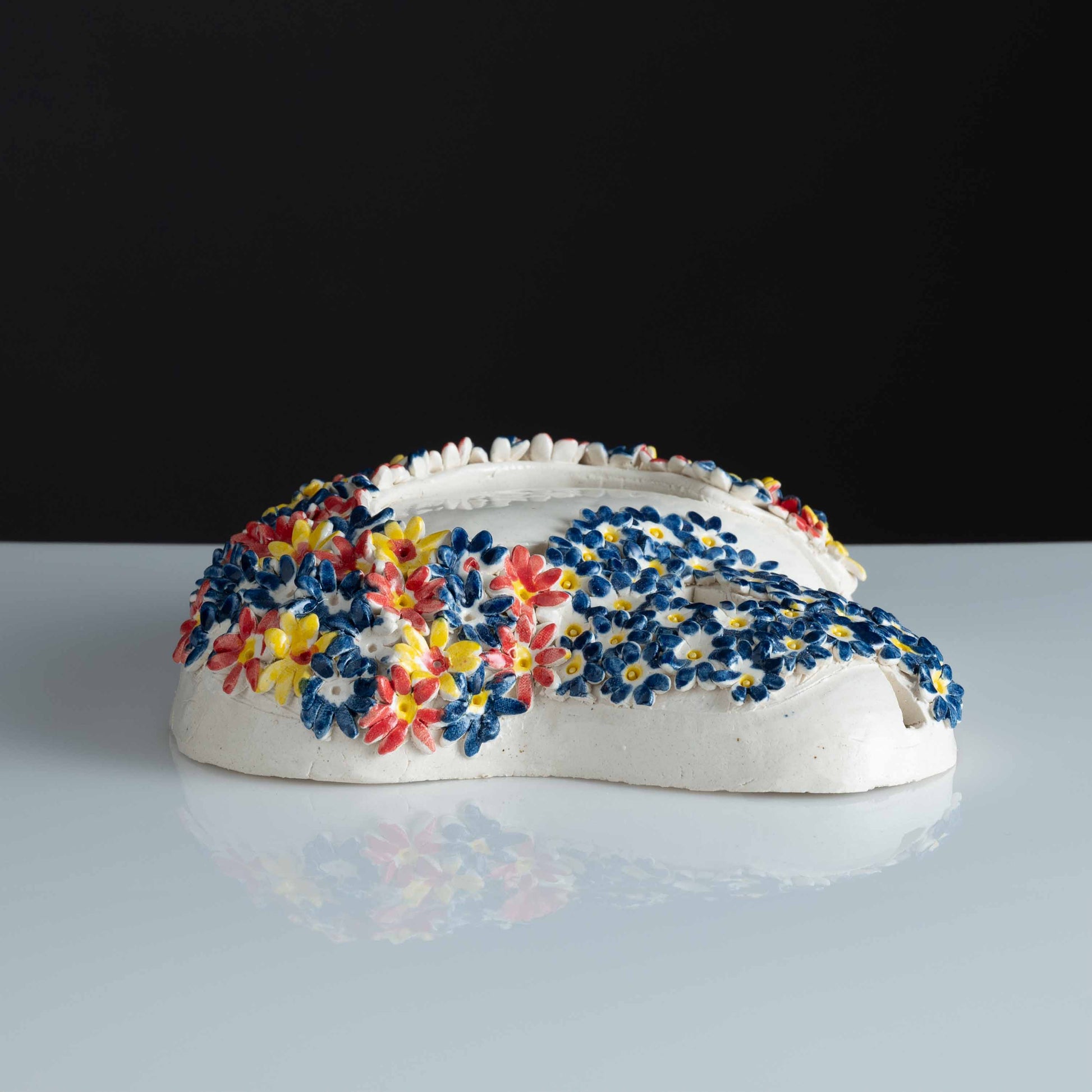 The "Shabdakruti" series of ceramic works blends cultural heritage with botanical beauty, bringing to life an art form that is as much a tribute to language as it is to nature. Each work features a harmonious fusion of sculpted Odia letters and delicate floral motifs, creating a striking interplay between form and texture. The sinuous curves of the script weave seamlessly through petals and leaves, symbolizing the flow of stories and expressions that transcend spoken words.