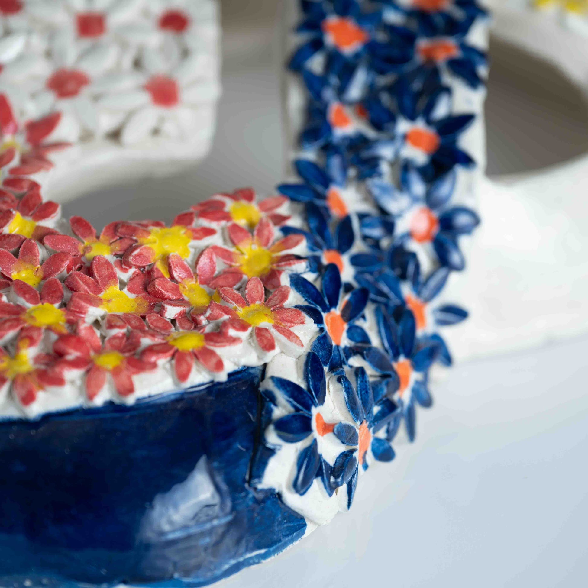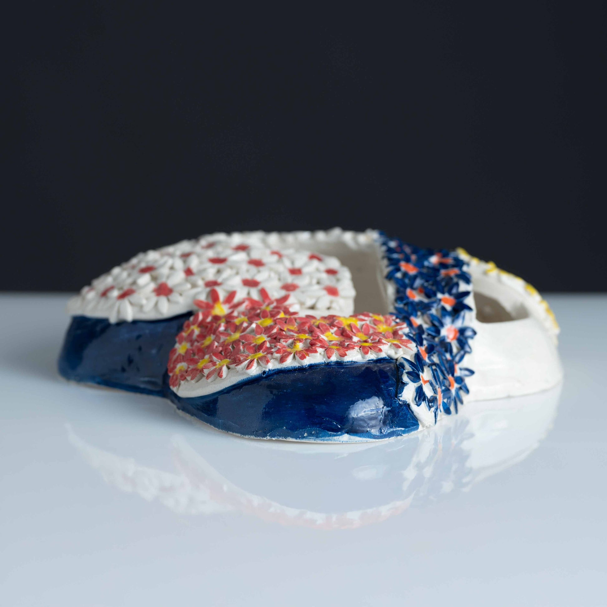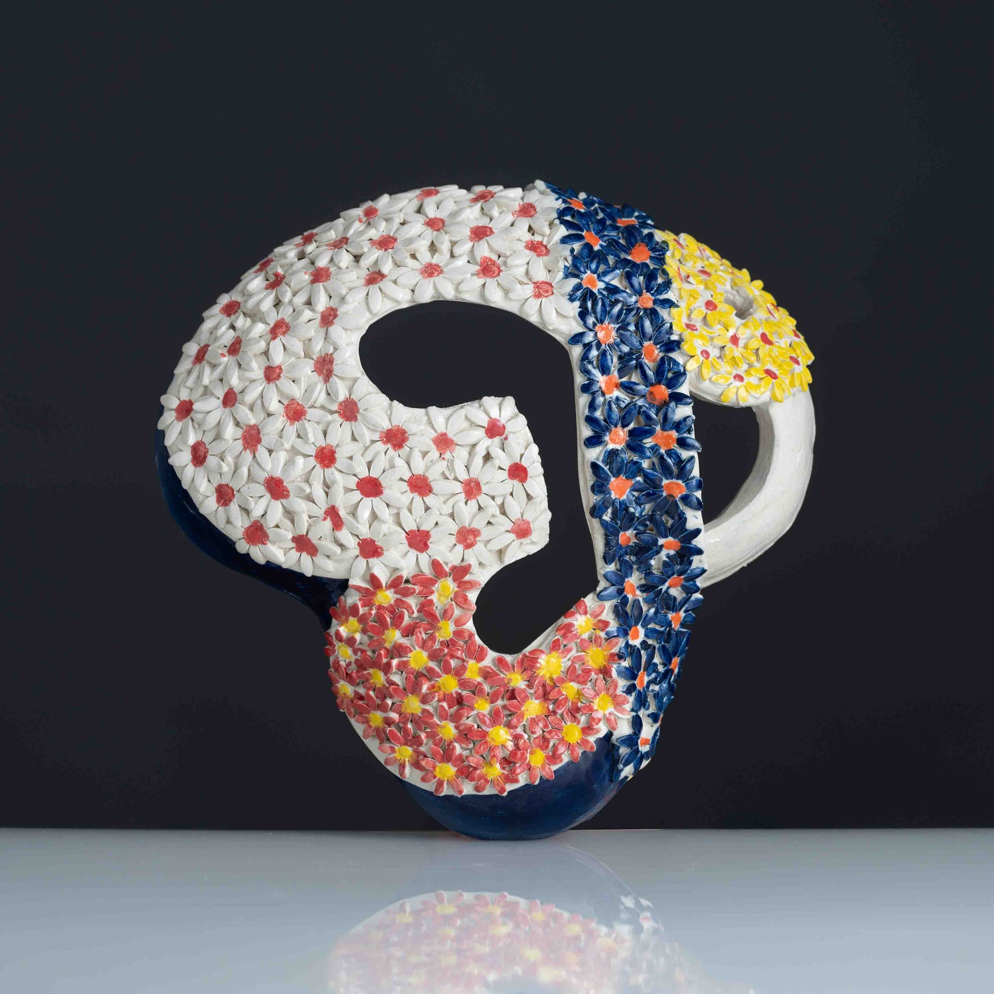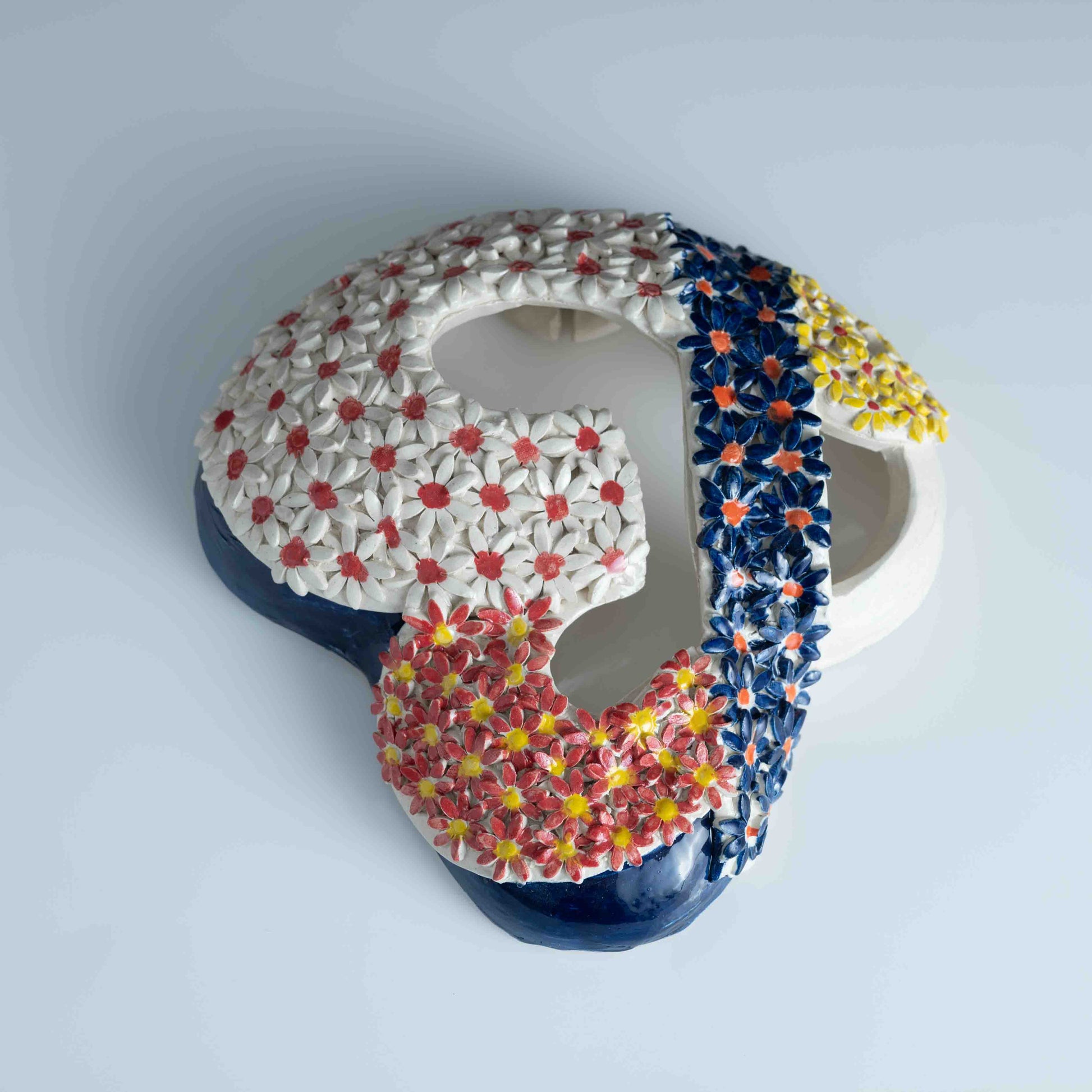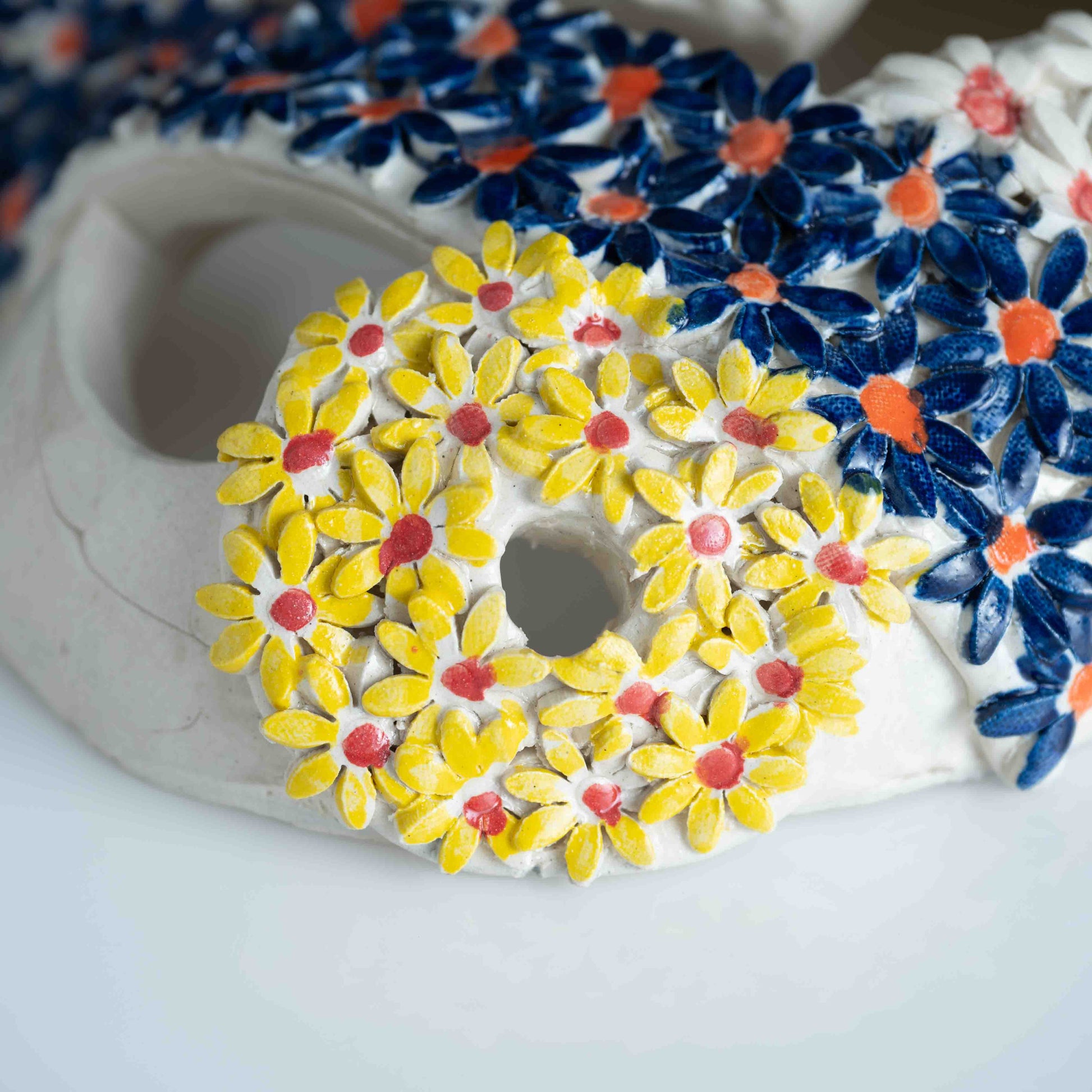 The "Shabdakruti" series of ceramic works blends cultural heritage with botanical beauty, bringing to life an art form that is as much a tribute to language as it is to nature. Each work features a harmonious fusion of sculpted Odia letters and delicate floral motifs, creating a striking interplay between form and texture. The sinuous curves of the script weave seamlessly through petals and leaves, symbolizing the flow of stories and expressions that transcend spoken words.