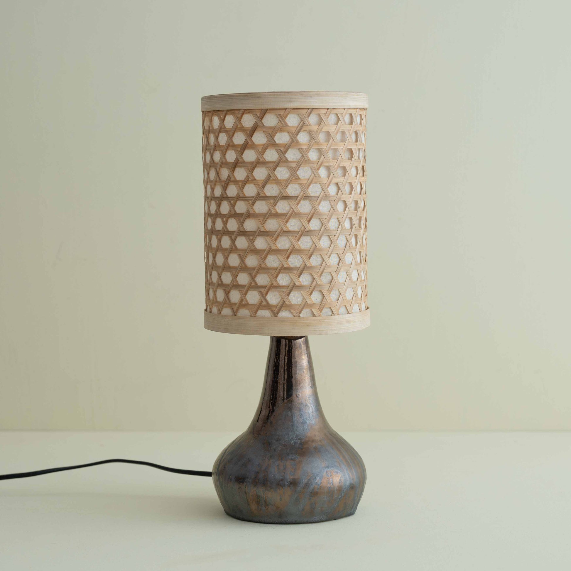 Ratna, Sanskrit for "jewel," represents the pinnacle of the Aabha Lighting collection—a breathtaking fusion of Ember collection Raku ceramics with traditional bamboo craft. This extraordinary table lamp transcends mere illumination to become a collectible art piece that celebrates Odisha's most sophisticated craft traditions in a single, harmonious form.