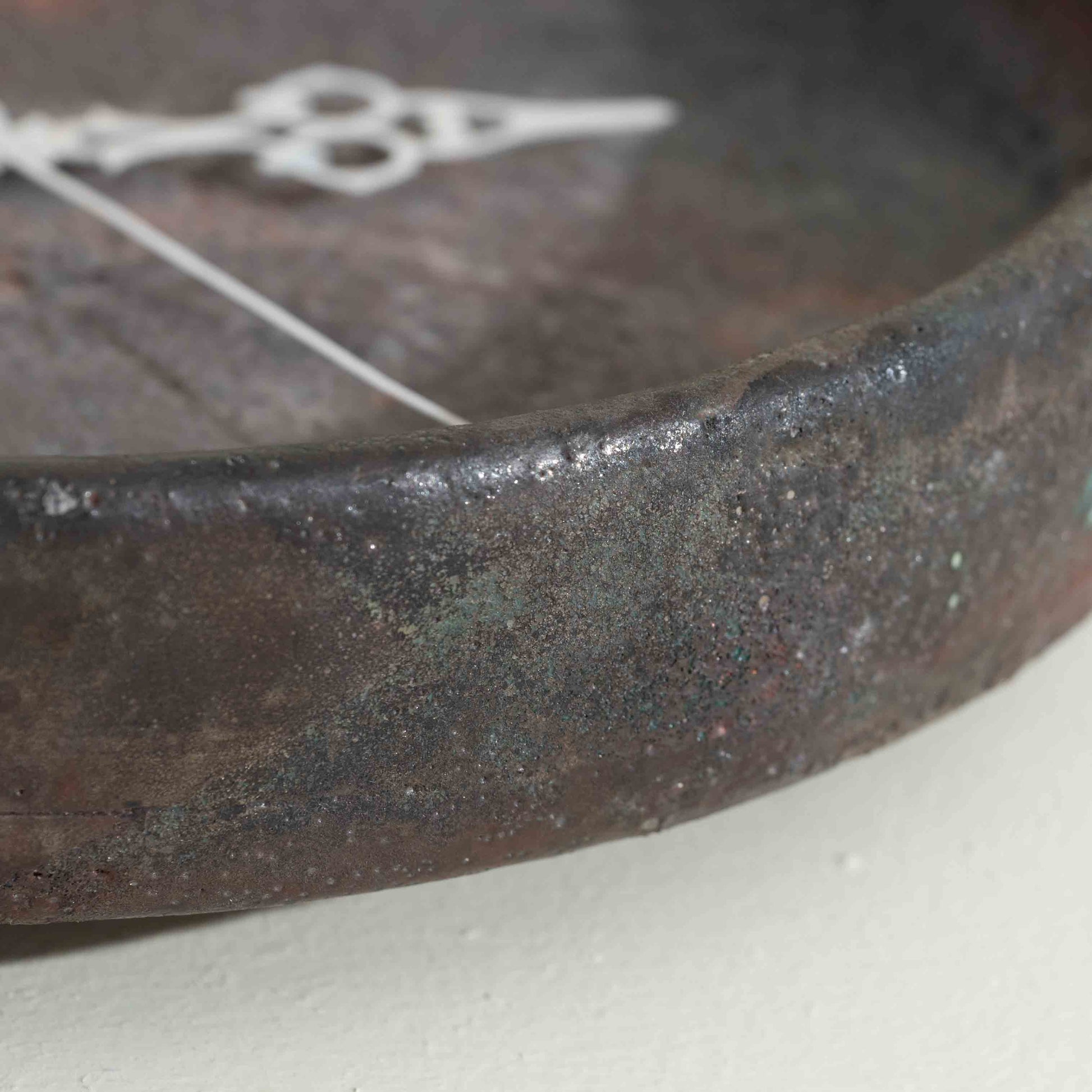 Time becomes art with the Ember Kaal wall clock, where the ancient Japanese Raku firing technique transforms a functional timepiece into a mesmerizing cosmic landscape. This extraordinary piece features a dramatic surface where deep charcoals swirl with copper flashes and burnt sienna tones - each pattern uniquely formed through the dramatic alchemy of fire, smoke, and reduction that defines authentic Raku ceramics.