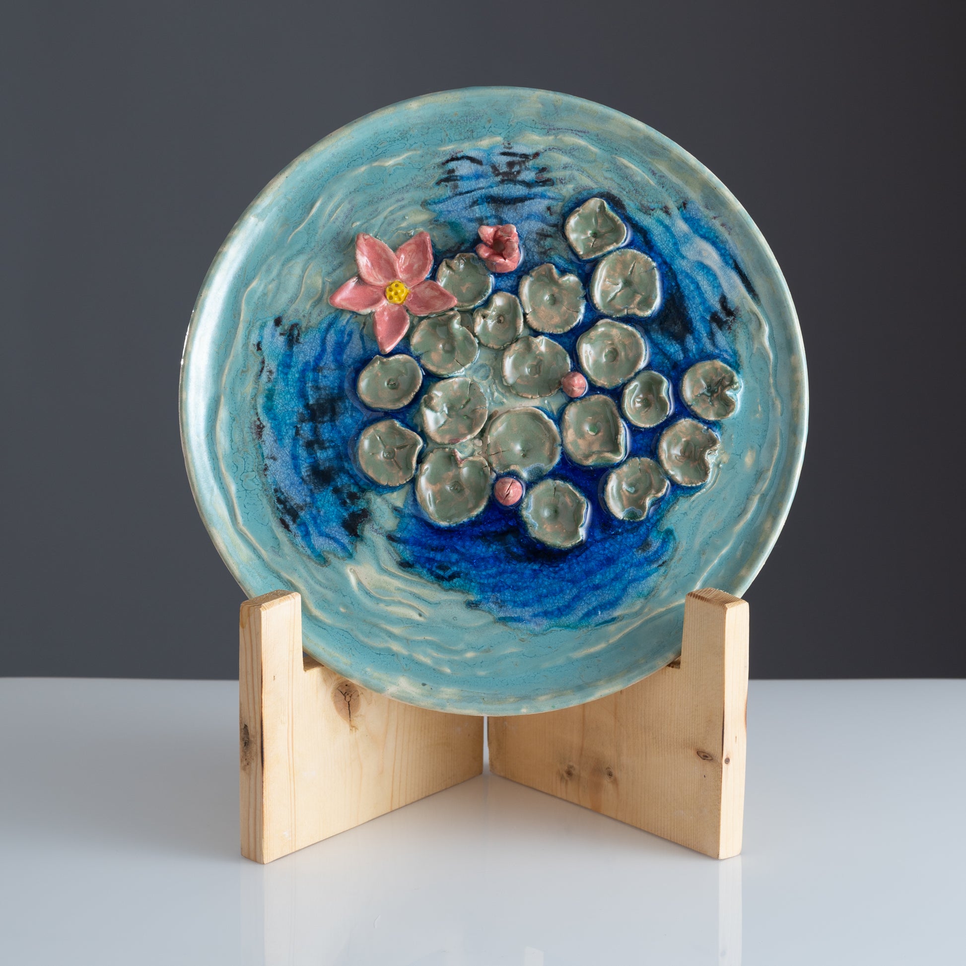 This handcrafted plate features a stunning lily pond design, bringing a touch of nature's elegance to your living space. The Lily Pond Plate showcases a meticulously scene of delicate lilies floating on a serene pond, complete with intricate details that evoke a sense of tranquility and grace. The vibrant colors and lifelike design make this plate a standout addition to any living space.