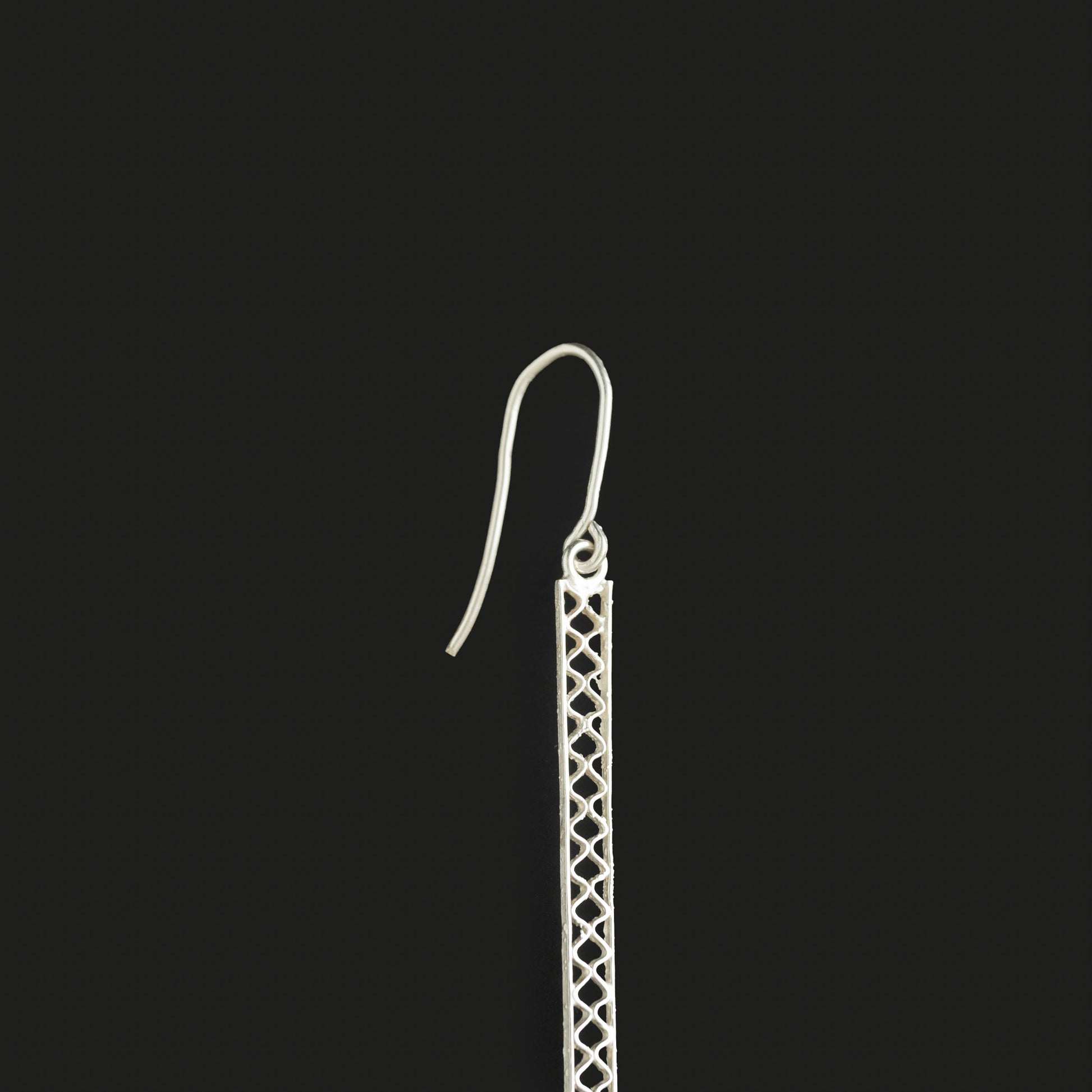 The Ashoka Lattice Drop Earrings represent the architectural grandeur of ancient Odishan temples translated into wearable art. These striking statement pieces feature elongated geometric filigree panels showcasing the intricate "tarakashi" latticework that has defined Cuttack's silvercraft tradition for centuries. Each delicate diamond pattern is meticulously handcrafted, creating mesmerizing light play through its openwork design.