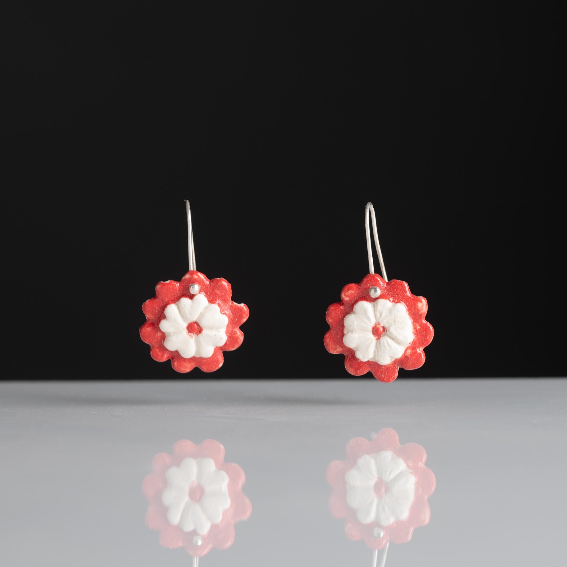 Add a bold touch of nature-inspired elegance with these stunning ceramic stoneware earrings. Drawing inspiration from the vibrant petals of the hibiscus (mandar/ Malvaceae) flower, each piece is intricately handcrafted to capture its striking beauty and organic texture. The rich, earthy glaze enhances the design, while a silver push pin ensures both comfort and sophistication.