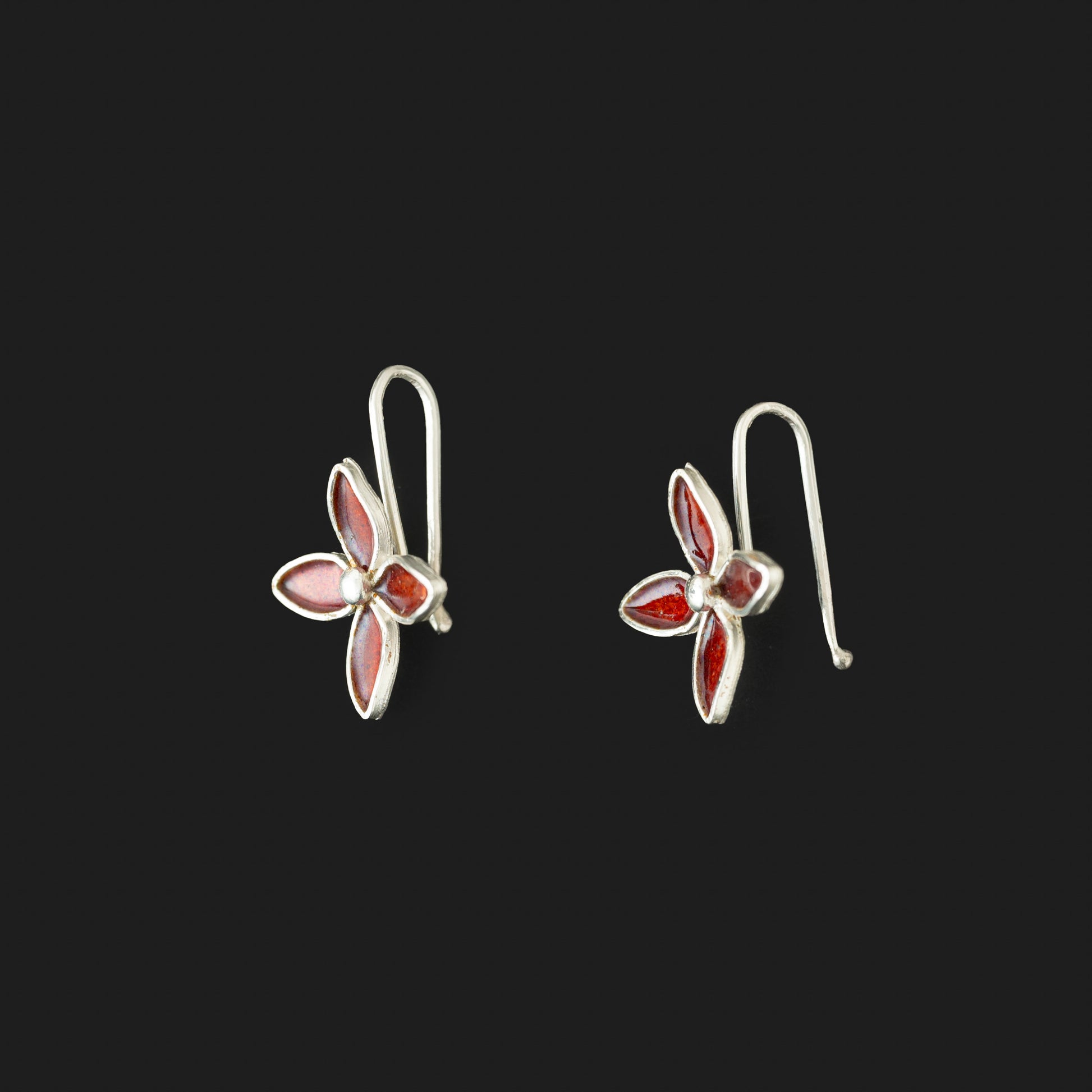 The graceful proportions and comfortable hook design make these earrings perfect for both daily wear and special occasions. Each petal is carefully crafted with precise enamel application, highlighting the natural variations that occur in actual Ashoka blossoms as they bloom and mature. The refined silver framework provides a clean, contemporary setting that allows the rich enamel work to take center stage.