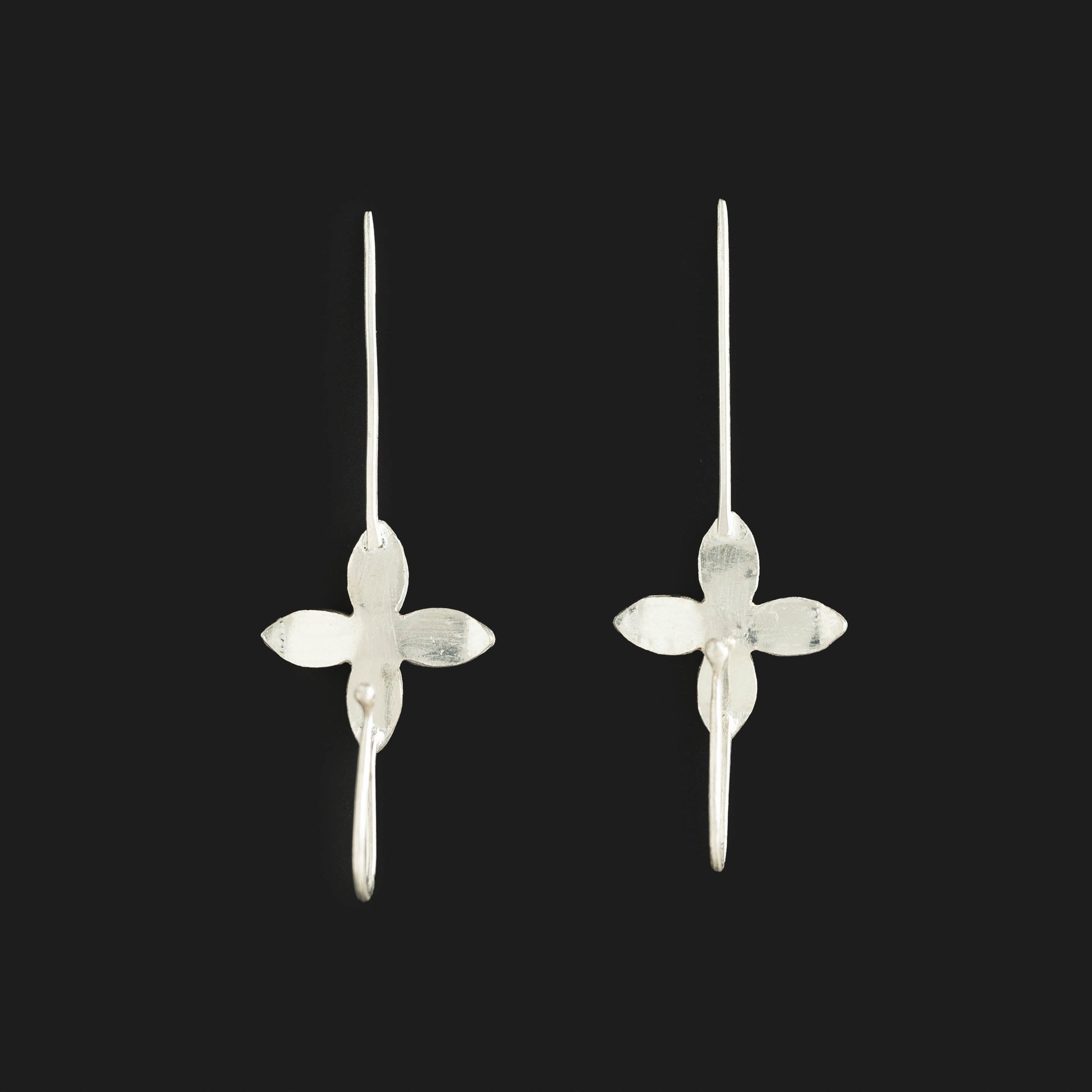 The Ashoka Orbit Wire Earrings represent a bold fusion of contemporary sculpture and traditional Odishan craft, where the sacred Ashoka blossom floats within an elegant silver wire constellation. Each earring features a striking linear composition with elongated silver rods that create dynamic negative space, culminating in a graceful orbital curve at the base.