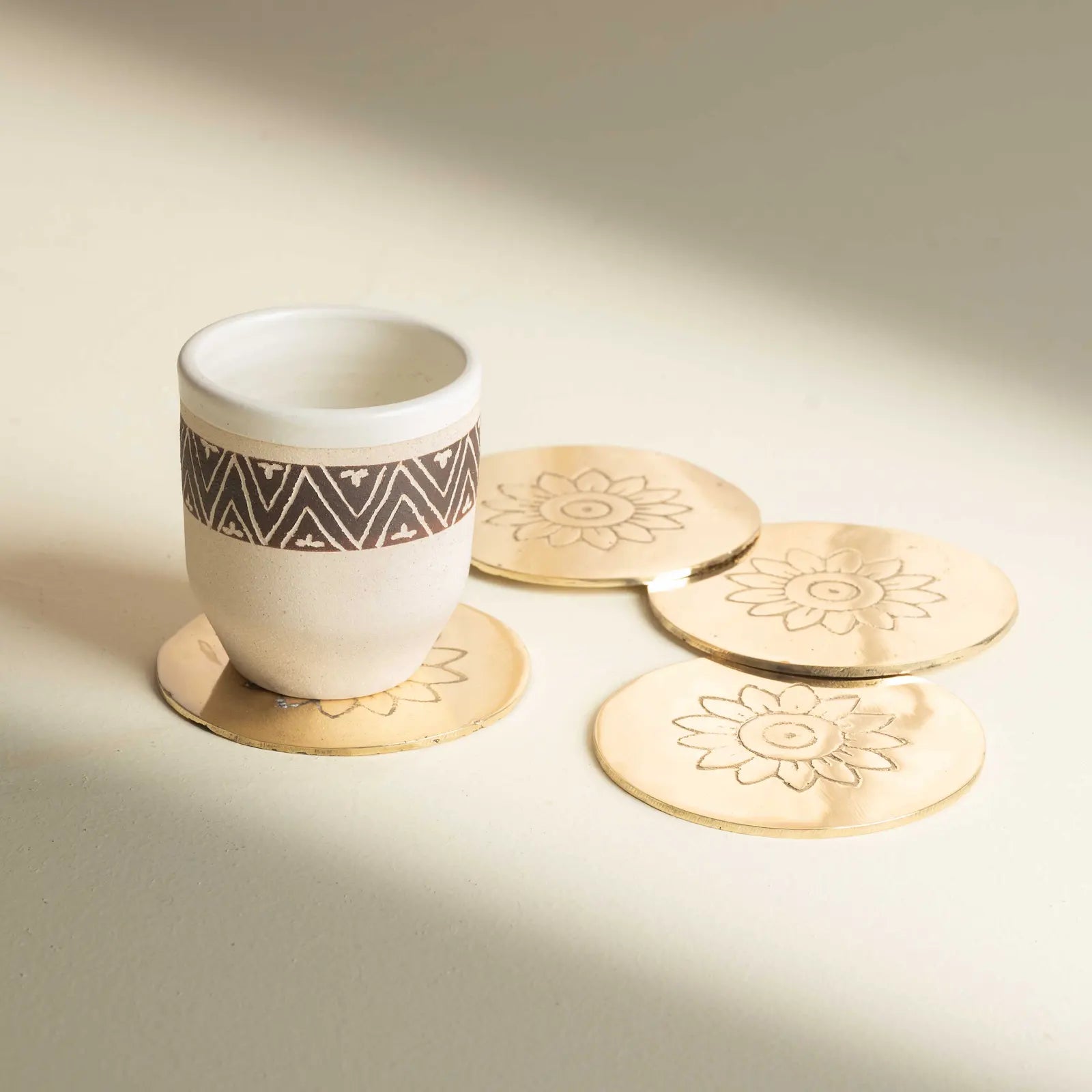 Celebrate the radiant beauty of Odisha's natural heritage with the Prafulla Brass Coaster Set, a stunning collection that brings the state's abundant floral diversity to your table. Handcrafted by the master Kansari artisans of Balakati village, each piece transforms functional design into a celebration of the sacred bond between humanity and the natural world.The name "Prafulla"—meaning "fully bloomed" or "radiant blossom" in Odia—perfectly captures the essence of these coasters.