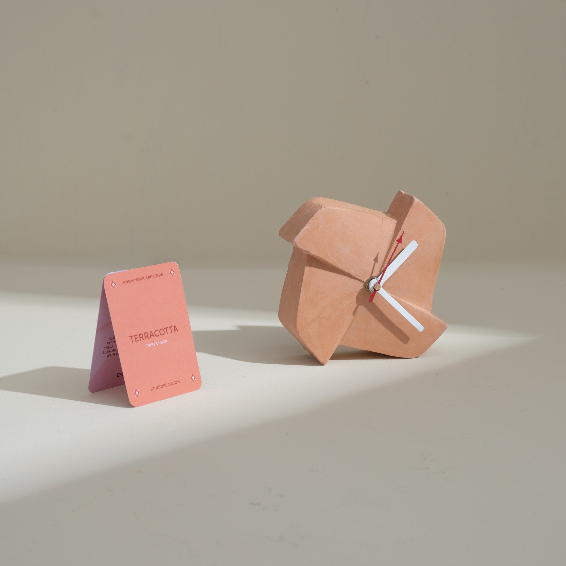 The Firki Clock represents the perpetual motion of time and tradition, its pinwheel form echoing the winds that once filled the sails of Odishan trading vessels. Designed by Abhijeet Kaushal and crafted by ceramist Rakesh Rana, this sculptural timepiece brings childhood memories into contemporary living spaces.