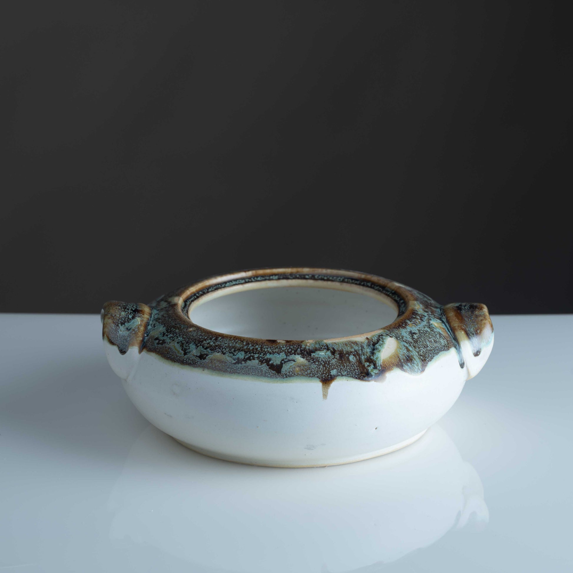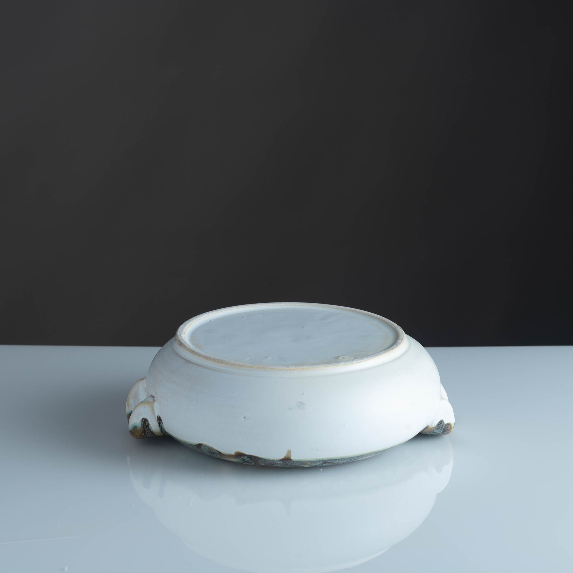 The handmade ceramic serving dish is 7.5” inch diameter x 2.5” inch height and comes with a lid to keep food warm.