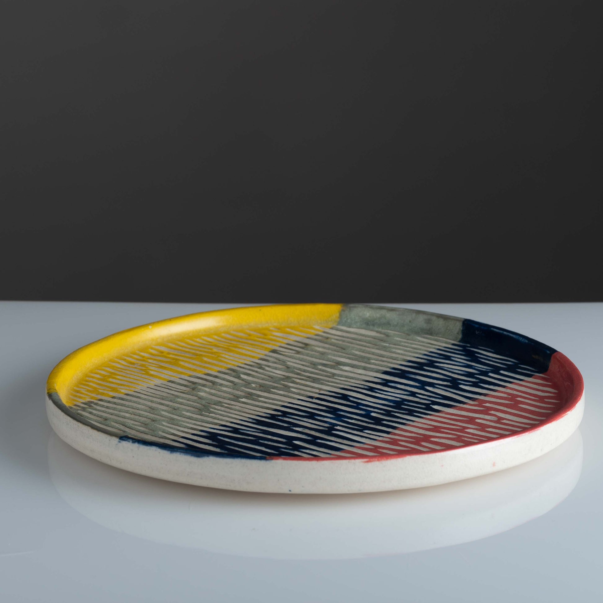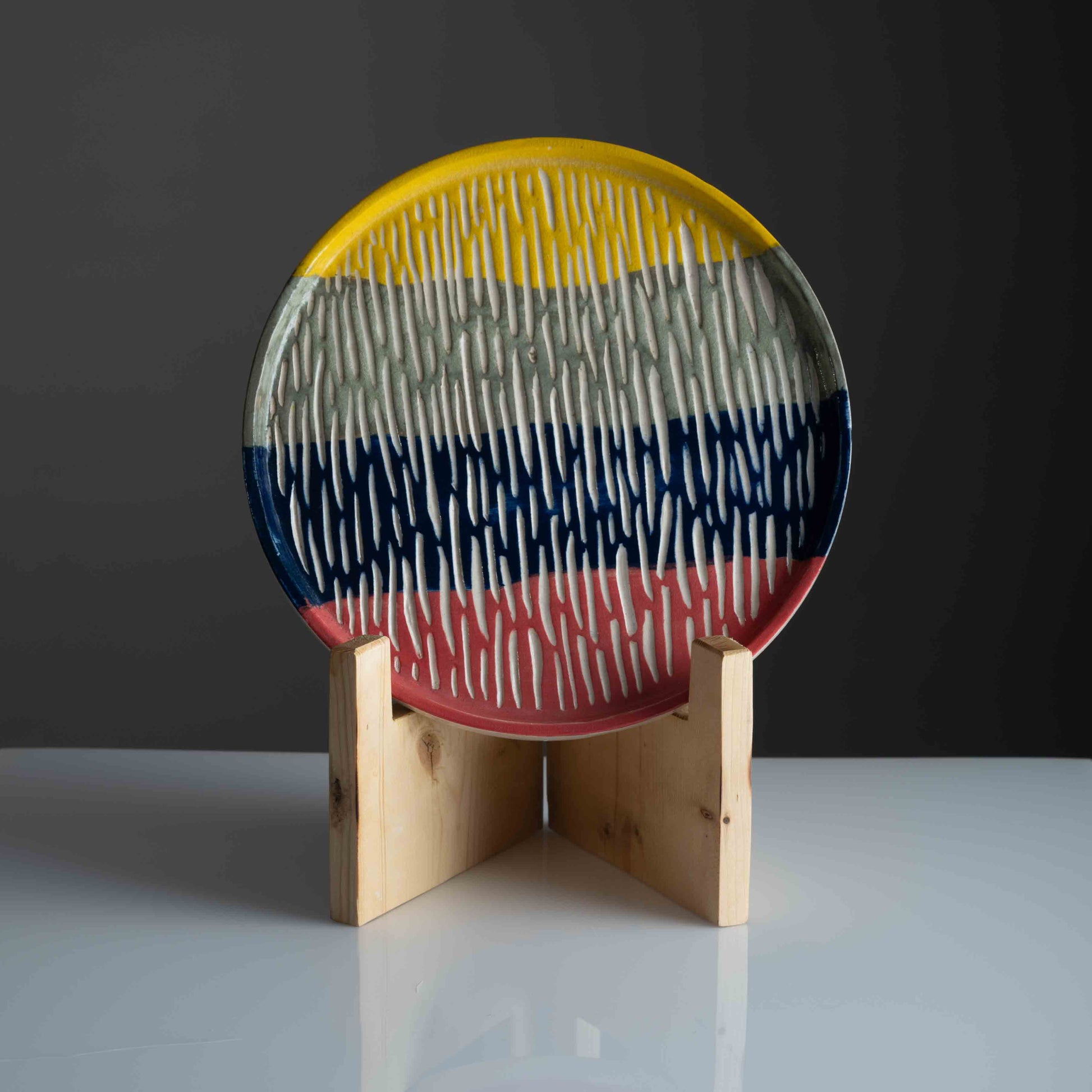 Indulge in the exquisite fusion of sabai grass craft and ceramics. Hand-pressed with sabai grass leaves, meticulously crafted at the studio, and fired to perfection, this plate embodies the essence of the Bathudi tribe's environment, thoughts, and food habits.