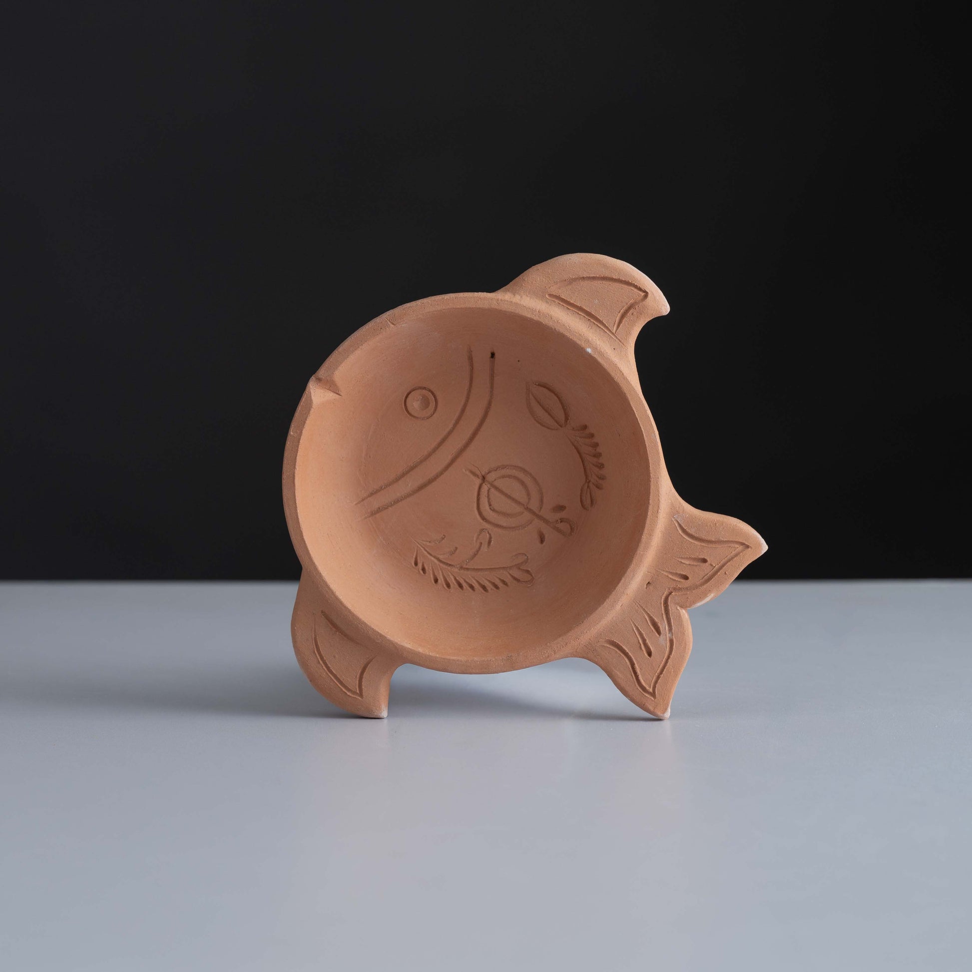 Each bowl features intricate hand-carved details symbolizing the connection between land and sea that defines Odisha's coastal identity. The graceful fish silhouette with its distinctive fin details and expressive features brings a touch of whimsy to your table, while the warm terracotta clay speaks to our ancient pottery traditions.